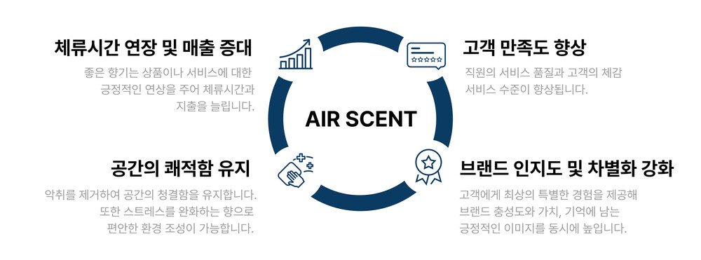 전문 조향 컨설턴트가 최적의 향을 찾아드리며, 쾌적한 환경과 매출 증대를 지원합니다.